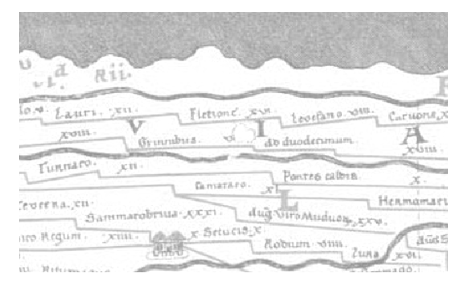 Het water dat Teunis Vink in 1926 ‘de Linschotenstroom’ noemde[3] is al lang geleden door moeder natuur en door toedoen van de mens verdwenen of in delen van andere wateren opgegaan, zoals de Linge, de Zoel, de Lek, de Hollandse IJssel, de Korte Linschoten en de Kromwijker Wetering. Meestal kunnen er aan de helaas soms destructieve bijdragen van de mens geen persoonsnamen gekoppeld worden, maar in dit geval kan van een bekende Nederlander uit de middeleeuwen gezegd worden dat hij een belangrijke steen heeft bijgedragen. In 1285 liet de Hollandse graaf Floris V de Hollandse IJssel bij Hoppenesse (Klaphek) afsluiten. Leuk voor de boeren die daardoor veel wateroverlast kwijtraakten en niet leuk voor de handelaren die zo een transportweg verloren. De maatregel zal meerdere vertakkingen van de Rijn beïnvloed hebben. Maar de Kromwijker Wetering wijst ons de weg naar een plaats die in het Itinerarium Antonini ‘Traiecto’ wordt genoemd. Wandelt u in Woerden aan de zuidzijde van de Oude Rijn in westelijke richting, dan wordt u op een gegeven moment tegengehouden door de wetering. Vandaar zult u over de Kromwijkerkade naar het zuiden verder moeten om bij de Prinsenlaan in westelijke richting de brug te nemen en daarna over de Boerendijk weer terug te keren naar de Rijn. In de tijd van de Romeinse bezetting waren de Prinsenlaan en de brug er nog niet en moest men bij de uitmonding van de wetering in de Rijn met een boot naar de overkant. Daarom wordt die plek in het Itinerarium Antonini ‘Traiecto’ genoemd. Dat was geen plaatsnaam, maar een oversteek. Alleen in de routegids van Antoninus worden oversteken vermeld, en dan nog maar sporadisch. De rivieren in het Romeinse Rijk zullen ongetwijfeld talloze oversteken gekend hebben, maar op de Peutinger-kaart zult u ze niet vinden. Onder de titel ‘De Oversteek’ is er in SEMafoor 17.2 een artikeltje over het verschijnsel te vinden[4], waardoor u ook gaat begrijpen waarom met ‘Traiecto’ niet Utrecht bedoeld geweest kan zijn. Er zal op de route van Kleve naar Katwijk aan Zee ongetwijfeld ook een oversteek zijn geweest bij de splitsing van de Waal en de Neder-Rijn, maar die heeft voor zover wij weten, geen schriftelijke vermelding gehaald.
